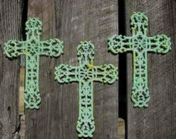 Cast Iron Crosses Set Of 3-Antique And Verde Finish